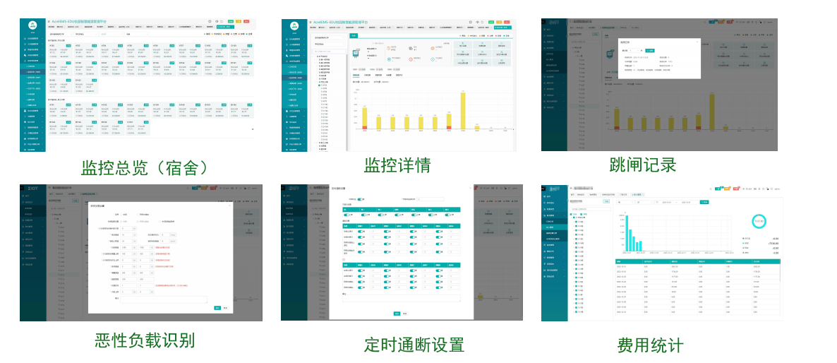 對宿舍用電進行精細化計量及控制。單間宿舍可最多進行5路獨立計量控制(違規電器識別、定時通斷),并具有基礎額度設置、跳閘記錄等功能嗎,可與校園一卡通對接統一充值。