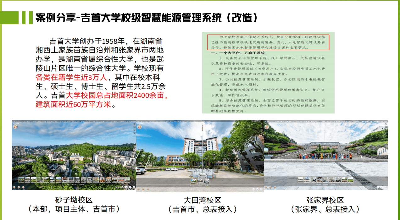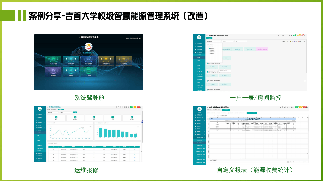 作為湖南省屬綜合性大學,吉首大學擁有近3萬在校學生,校園面積2400余畝 ,如此龐大的規模,用電管理難度可想而知。此前,學校存在用電管理系統分散、設備老化等問題,各部門之間的數據無法實現共享,就像一個個“信息孤島”,導致管理效率低下,安全隱患叢生。而且,傳統的報修系統無法滿足學校定制化的服務需求,電梯、水泵等設備出現故障時,不能及時被發現和處理,給師生的生活帶來了諸多不便。